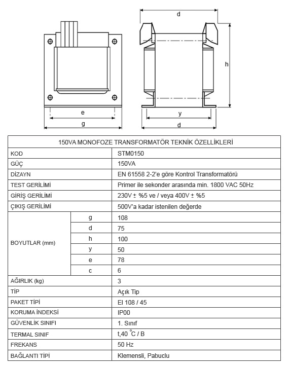 | STM0150 | 150 | EI 96/45 | 96 | 75 | 100 | 50 | 78 | 6 | 3 |
