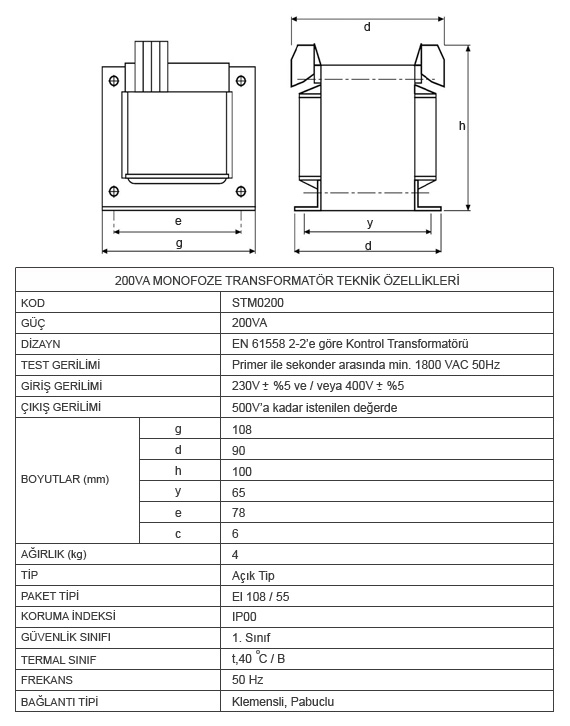 | STM0200 | 200 | EI 108/55 | 108 | 90 | 100 | 65 | 78 | 6 | 4 |