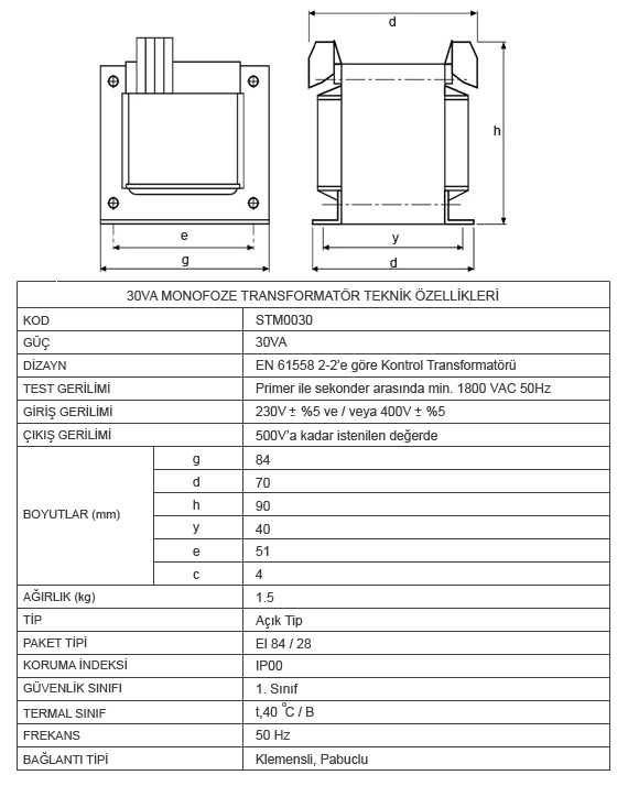 | STM0030 | 30 | EI 84/30 | 84 | 70 | 90 | 40 | 51 | 4 | 1,5 |