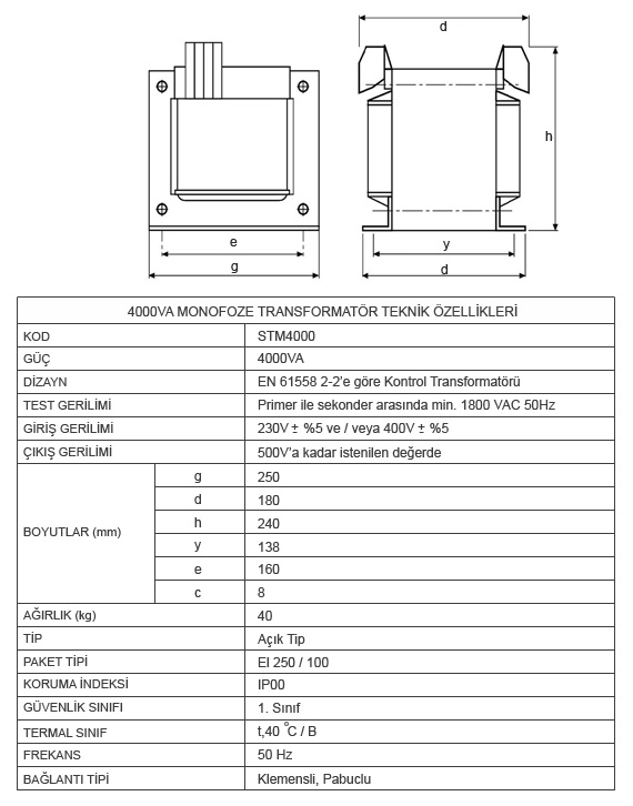 | STM4000 | 4000 | EI 250/100 | 250 | 180 | 240 | 138 | 160 | 8 | 40 |